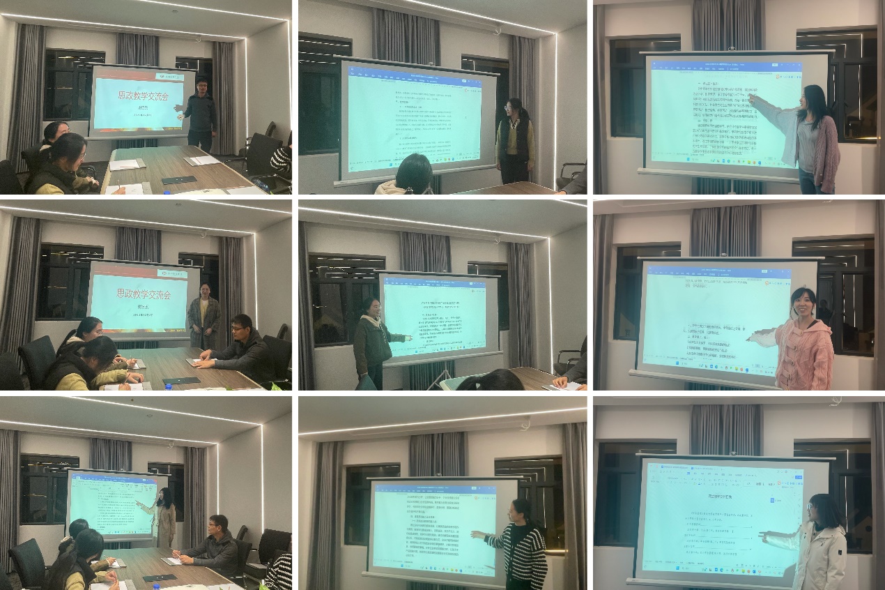 接着,以课程组为单位进行了课程思政教学交流活动。课程组成员围绕如何在课程教学大纲中融入思政元素、如何进一步完善教学进度表和教案、如何设计课程思政教学案例等展开了讨论与分享。