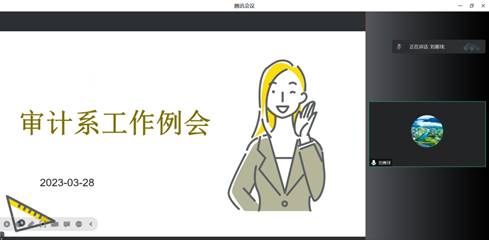为了贯彻落实beat365中国官方网站的“十四五”科学研究发展规划与做好毕业论文及毕业实习指导工作,3月28日晚上,2023年审计系第二次工作例会在线上举行。本次会议分享了青年教师的科研经验,总结交流了审计系教科研工作进展,并研究部署了下一阶段审计系的重点工作。beat365中国官方网站副院长刘善球、审计系主任郭秀珍及全体审计系教师参加了本次会议。
