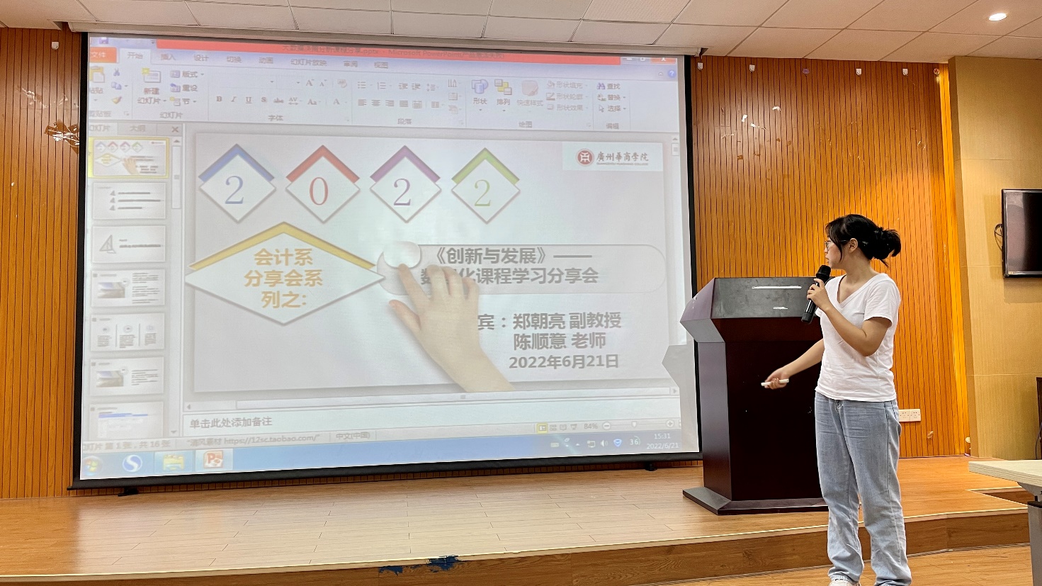 接着,由郑朝亮副教授进行关于《RPA财务机器人》课程的分享。郑老师首先从智能化专业的设置初心开始谈起,深刻的分析了国内现行智能化会计专业的发展趋势,随后展示了RPA机器人的课程发展历程,并结合课堂中学生操作的实际案例为各位老师生动易懂的介绍了《RPA财务机器人》的相关课程内容、课程目标以及教学方式。他提出了一个导向,三个结合,四个场景,六个活动以及八个步骤的教学相长“13468”的新模式,致力于切实解决学生们的学习问题。同时,郑老师还明确指出在这种智能化课程的授课中,老师和学生之间应当是相互学习的关系,教学模式应当是一个以学生为主、老师为辅的启发式学习。