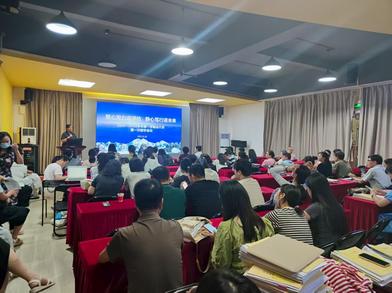 会议首先对全体教师的暑期工作成果表示了肯定,并聚焦新学期各项重点工作。唐丽华主任在讲话中强调了三项日常工作的核心地位,即课堂教学、试卷和论文,指出这三项工作是合格评估的“保底工作”。她特别提醒老师们认真检查和复核试卷,并指出试卷分析应“实事求是、有针对性”。另外,假期期间抽查的论文都存在需要修改的地方,要求老师们尽快将电子版和纸质版进行修改和替换。在课堂教学方面,她强调了导师制的重要性,鼓励青年教师主动向老教师学习,老教师则要关心青年教师的成长。