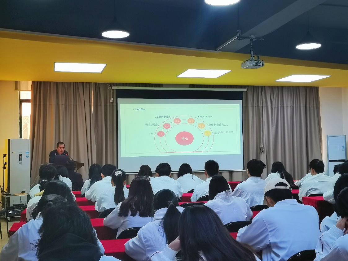 姚凤民院长首先从说文解字、佛教、文化三个视角向同学们诠释了初心的泛义,其次向同学们阐述了中国共产党的初心。他说初心就是做某件事的最初的初衷、最初的原因,而中国共产党的初心原点就是以人民为中心。并指出习近平总书记在党的二十大报告中强调的“三个务必”的重要性:全党同志务必不忘初心、牢记使命;务必谦虚谨慎、艰苦奋斗;务必敢于斗争、善于斗争。坚定历史自信,增强历史主动,谱写新时代中国特色社会主义更加绚丽的华章。作为新时代的大学生,要时刻牢记“为中国人民谋幸福、为中华民族谋复兴”这个初心和使命,用习近平新时代中国特色社会主义思想武装头脑,不忘总书记的嘱托,努力学习。