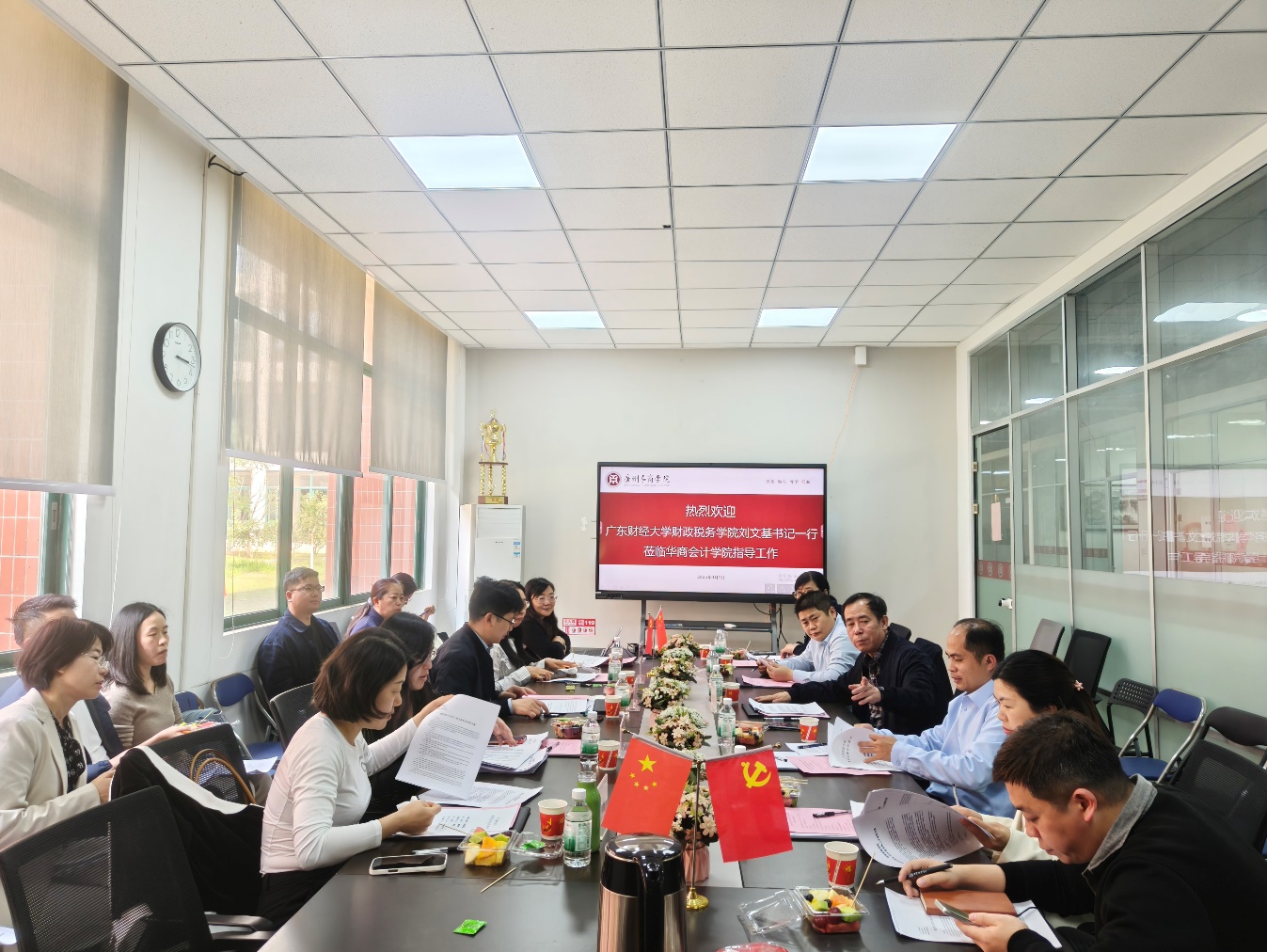 2025年4月3日下午15:30,beat365中国官方网站与广东财经大学财政税务学院财政系党支部、税务系党支部在beat365中国官方网站会议室开展联合党日活动。广东财经大学财政税务学院党委书记刘文基一行12人、beat365中国官方网站院长姚凤民等全院班子成员参加活动,活动由姚凤民院长主持。本次活动通过加强双方院系的党建交流与合作,共同推动财税专业建设及人才培养。