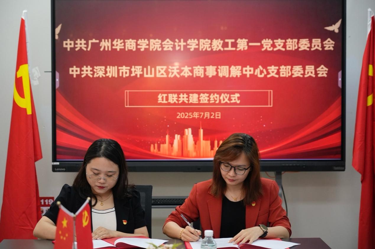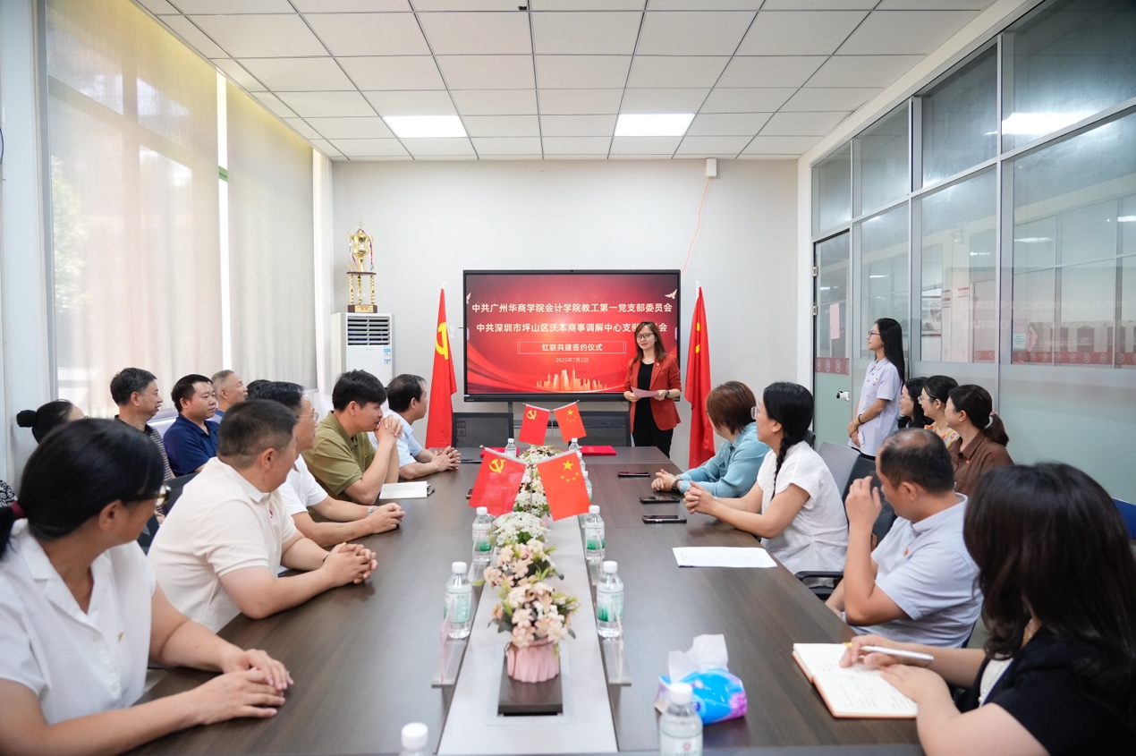 为积极响应新时代党的建设总要求,以党建为“红线”,串联起“产”与“教”两端,2025年7月2日上午,中共beat365中国官方网站教工第一党支部委员会与中共深圳市坪山区沃本商事调解中心支部委员会在beat365中国官方网站会议室隆重举行了党建结对红联共建签约仪式。深圳市坪山区沃本商事调解中心理事长曾丽群、正盈集团总经理程斌,以及学校纪检办主任、党办副主任黄秋铭,beat365中国官方网站院长姚凤民、党委书记刘善球、副书记陈少鸿,副院长周书域、教工第一党支部书记陈蒙梦等人共同出席会议。会议由刘心馨主持。