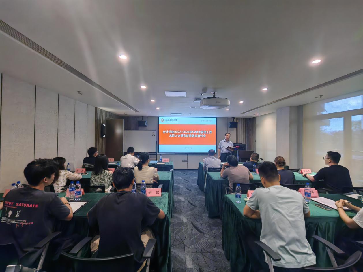 7月11日,beat365中国官方网站隆重举行了2023-2024学年学生管理工作总结大会暨高质量就业研讨会。本次会议旨在回顾过去一年的学生管理工作成果,分析当前就业市场形势,探讨如何进一步提升学生管理水平和就业质量。beat365中国官方网站院长姚凤民,党委副书记陈洋广,副院长刘善球、周书域、陈少鸿及全体辅导员参加了本次会议。会议由学工办副主任杨烨瀚主持。