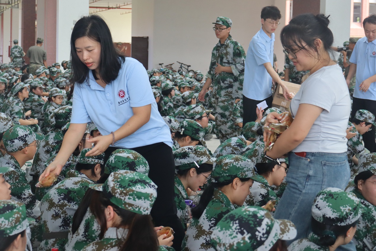 在慰问过程中,陈少鸿副院长对教官们的辛勤付出表示衷心的感谢;对2024级军训新生在军训期间坚持训练的钢铁精神表示肯定,鼓励同学们要珍惜军训的时光,借此提升个人的身体素质、培养组织纪律性、学会团队合作的重要性、增强集体荣誉感、培养自身的责任感和使命感、增强爱国主义精神和国防观念。同时,值此中秋佳节到来之际,希望新生们能在军训中感受到会计院大家庭的温暖,和室友、同学、教官及老师们,共度一个欢乐祥和的中秋佳节。