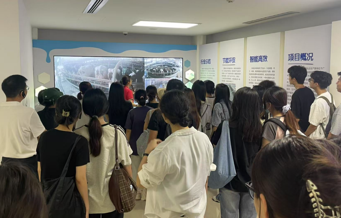在工作人员的带领下,学生近距离观摩了全自动乳品生产线,从原奶检测到灌装包装,数字化中控系统精准调度每个环节。同学们惊叹于"一瓶牛奶的诞生"背后,企业如何通过智能管控降本增效,这正是财务管理赋能实体产业的生动案例。