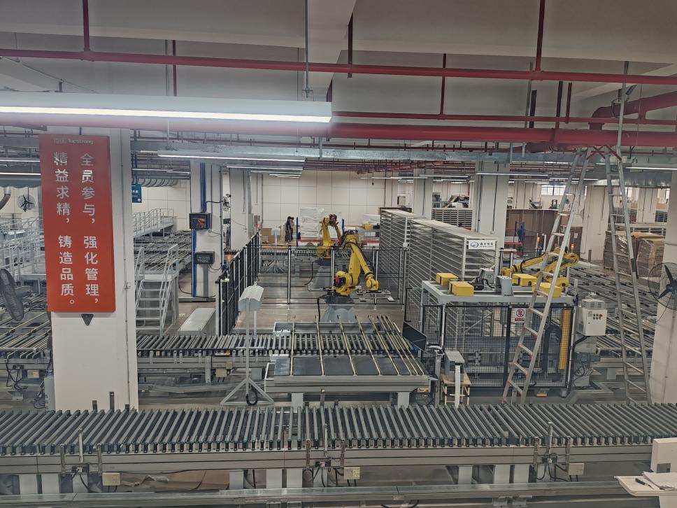 在五期智慧工厂,德国豪迈全自动生产线的高速运转令人震撼:板材从开料到封边仅需7分钟,AI视觉检测系统0.1秒完成瑕疵识别,智能仓储系统实现“零库存”精准配送。同学们近距离观察“黑灯车间”的无人化作业,直观理解“订单交付周期从45天压缩至15天”的数字化奥秘,纷纷用镜头记录机械臂精准协作的震撼场景。