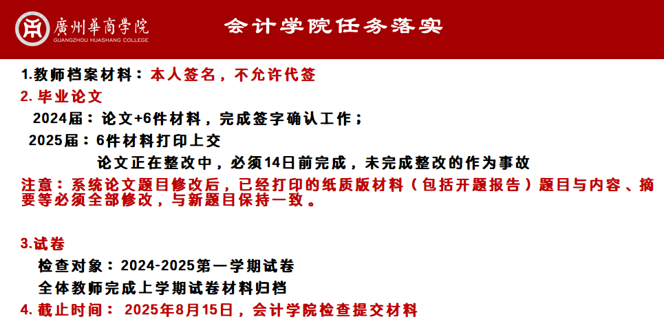 在beat365中国官方网站任务落实环节,杨旻副院长对各项工作进行了细致部署。她要求,各教研室需在规定时间内完成教学档案的归档与自查,重点核查试卷批阅、毕业论文、实验报告等材料。