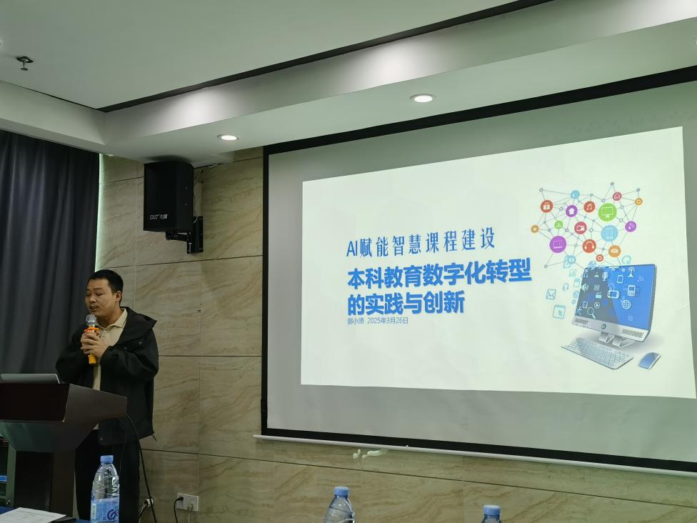 随后厦门网中网软件有限公司创新研发部总经理郭小沛带来“AI赋能智慧课程建设——本科教育数字化转型的实践与创新”主题演讲,分享了AI技术在课程设计与教学创新中的实践经验,为本科教育数字化转型提供了新思路。