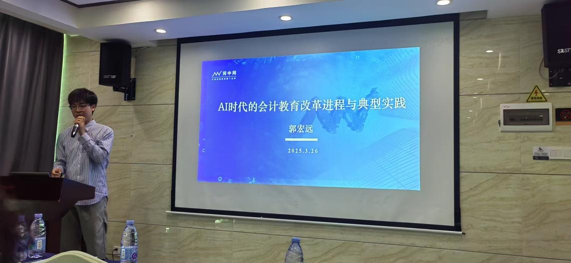 会议最后由厦门网中网软件有限公司院校服务部工程师郭宏远以“AI时代的会计教育改革进程与典型实践”为题,详细介绍了AIGC智教平台与生成式AI财务应用教学平台的功能与应用场景。他着重指出,AI技术的应用将极大地推动财经教育向智能化与实践化方向发展,助力构建财经教育新生态。