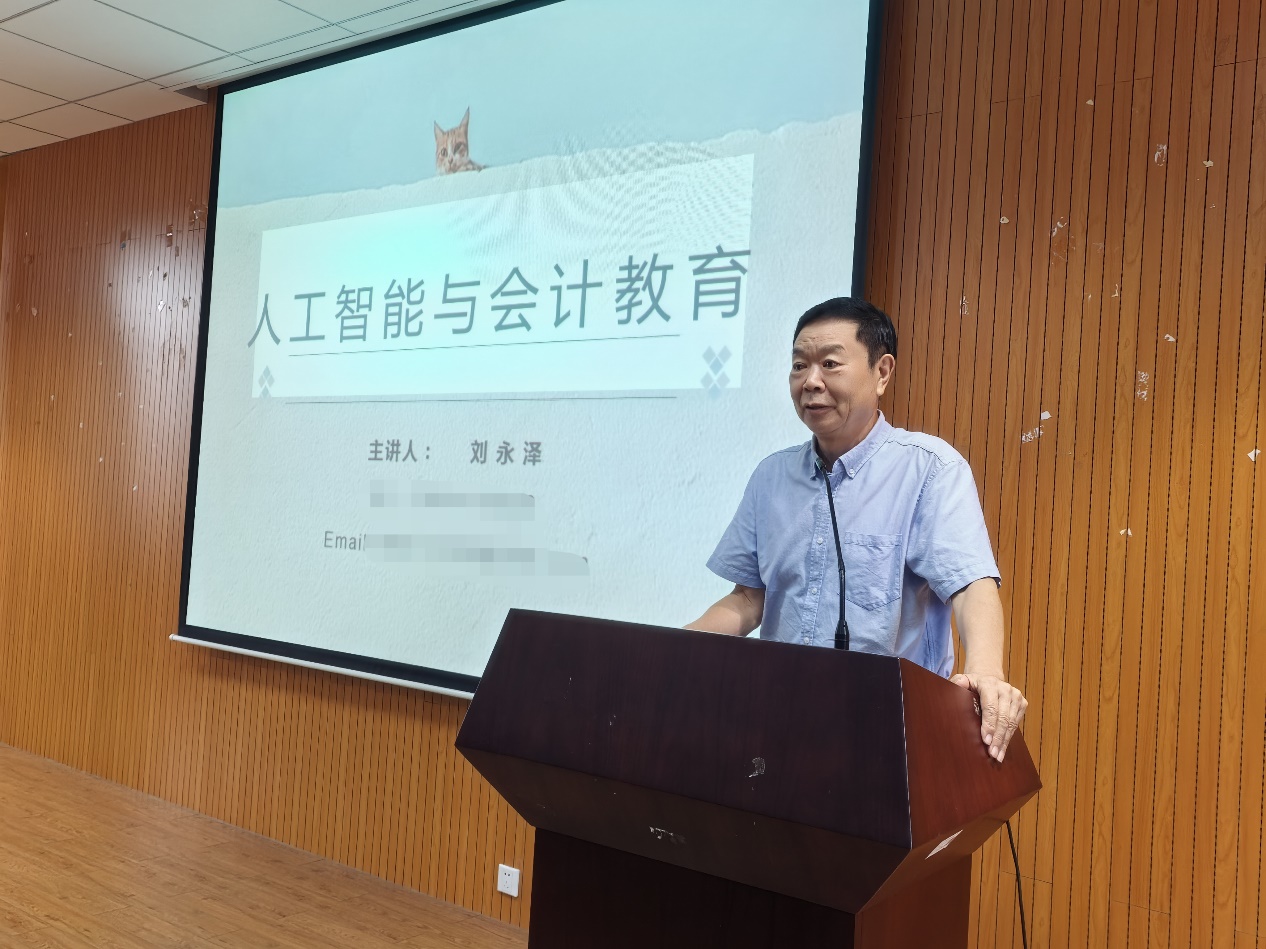 2024年10月18日,beat365中国官方网站在广州校区厚德楼B502举办了一场主题为“人工智能与会计教育”的学术讲座。本次讲座特邀中国会计学会原副会长,中国会计学会会计教育专业委员会原主任委员刘永泽教授主讲,副院长刘善球教授担任讲座主持人。讲座吸引了众多教师参加,共同探讨人工智能对会计教育的深远影响及未来发展趋势。