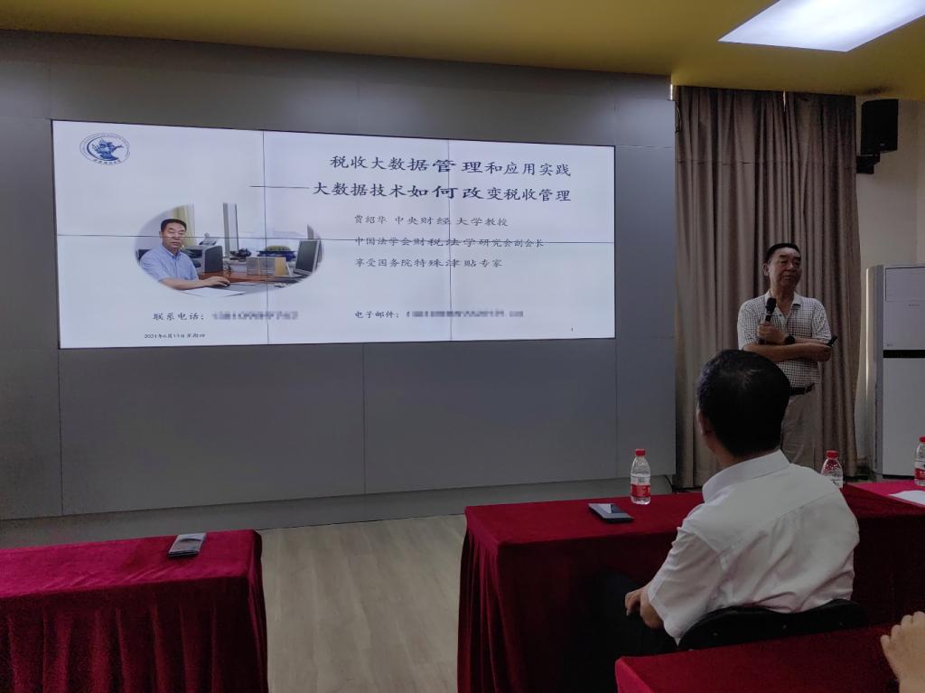 贾教授以本杰明·富兰克林名言“人生有两件事情不可避免:一是死亡;二是税收”引入,介绍了我国税收征管从“以票控税”到“大数据管理”的演变,并逐一介绍了讲座探讨的3个问题:一是我国的数据战略与税收大数据应用,二是税务系统大数据管理制度体系,三是税收大数据相关应用分析实例。