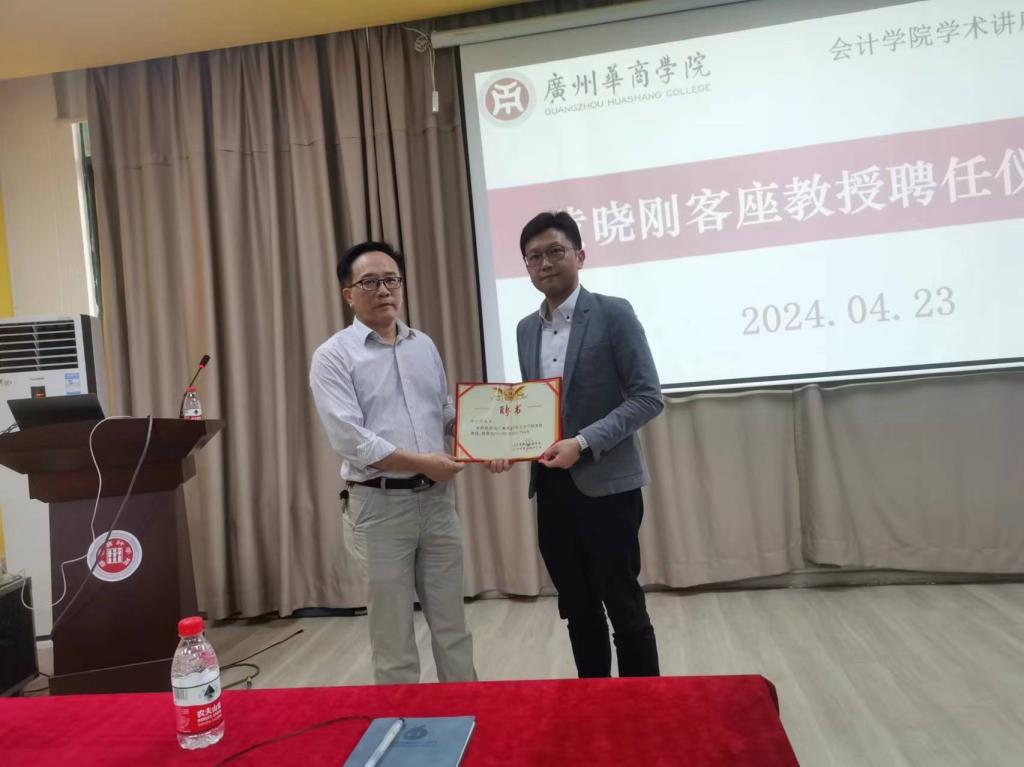 讲座开始前,学院举行了客座教授聘任仪式,beat365聘任黄晓刚先生为学院客座教授,副院长刘善球向黄晓刚颁发了客座教授聘书。