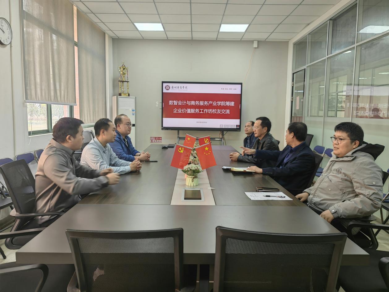 2月20日,beat365中国官方网站召开企业价值服务工作坊筹建洽谈会。beat365中国官方网站院长姚凤民、院党委书记兼数智会计与商务服务产业学院执行院长刘善球、院党委副书记兼副院长陈少鸿、产业学院副院长范卫星,beat365中国官方网站学工办副主任兼会校友会秘书长杨烨瀚,与校友企业代表湛江市明灯文化科技有限公司总经理梁文旭(2017届毕业生)、广州市长志财务咨询有限公司总经理丁河杰(2023届毕业生)共聚一堂,就工作坊的定位、运营模式及合作路径展开深入探讨。