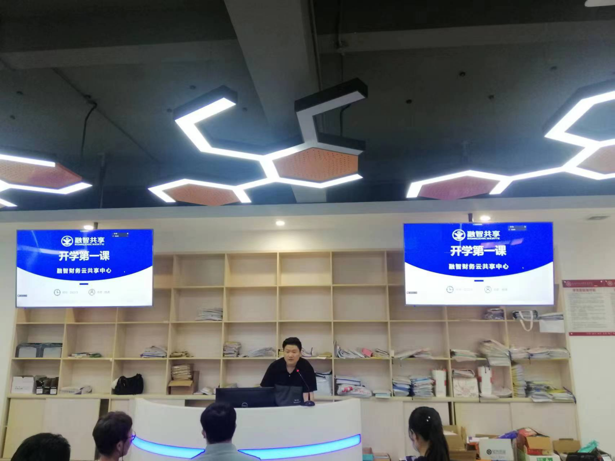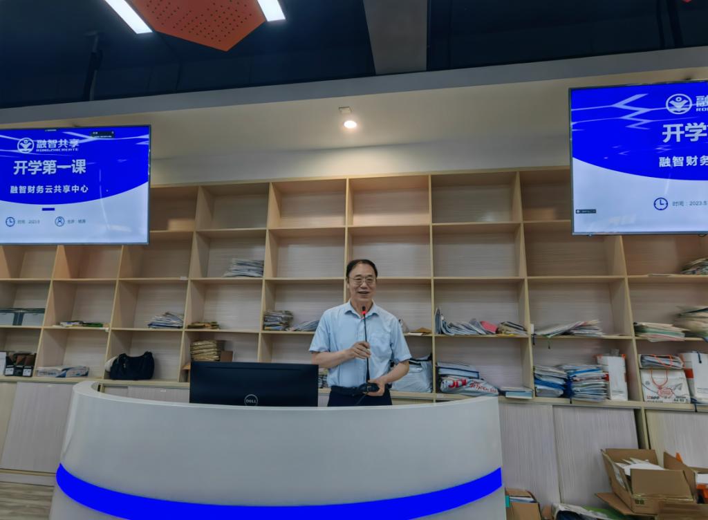 正誉股份财务负责人杨涛老师介绍了融智财务云共享平台发展历程、商业模式、集团财务共享与社会财务共享的区别。杨总监用自身十年财税工作经历讲述由在校生转换为职场人心路历程以及新时期财务人员应具备的能力。