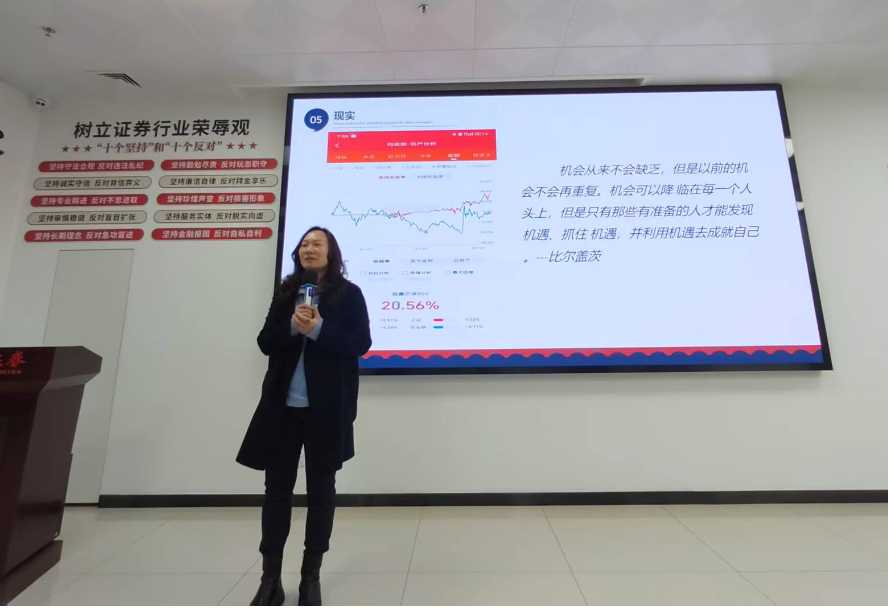 活动中,东莞证券资深投资顾问钟芙瑾带来了一场生动的金融实务讲座。内容聚焦当前证券市场热点,结合投资理财、财富管理等实际案例,深入剖析了行业趋势、风险管理及投资策略设计。