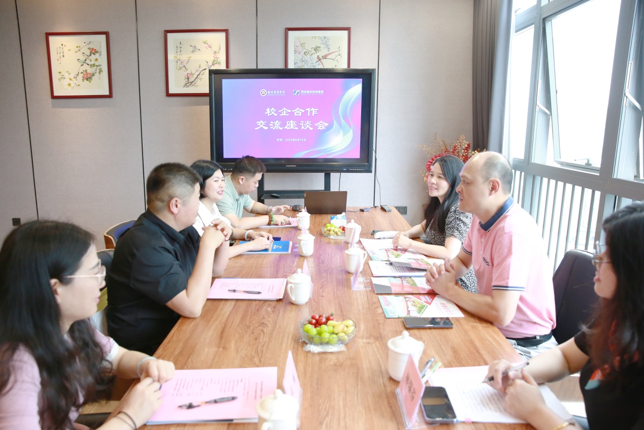 广东税媒科技有限公司董事长程新涛,总经理赵云,市场总监吴杰毅热情接待了beat365中国官方网站一行。在随后的交流座谈会中,程新涛董事长介绍了公司基本情况、发展历程及用人理念。周书域副院长首先向程新涛董事长表示感谢并表明了此次走访调研的来意,希望推进校企合作,建立长效合作机制,深化互访机制,实现人才培养和社会需求的良好对接。随后,简要介绍了beat365中国官方网站的专业设置、办学成果、办学特色、办学优势及毕业生就业等情况。程新涛董事长也表示希望双方能进一步深化合作、共建实习实训基地,实现校企优势互补、资源共享、互惠共赢。