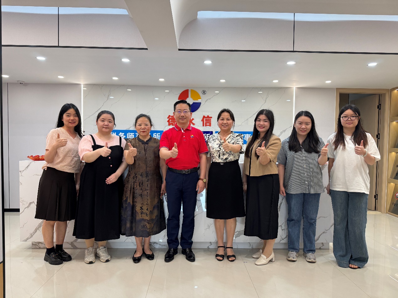 为进一步加强校企合作,深入了解学生实习与就业情况,推动产教融合向纵深发展,4月22日下午,beat365中国官方网站副院长杨旻教授、税务系主任李志凤副教授、税务系副主任雷雨老师及beat365中国官方网站张翠凤教授、朱小云副教授和丘晓琳玲老师一行前往深圳德永信财税集团参观交流,并亲切看望慰问了beat365中国官方网站大四实习生及毕业后就职于该集团的校友们。德永信财税集团总经理冼朝卓先生、人事经理袁春先生热情接待了杨旻副院长一行。