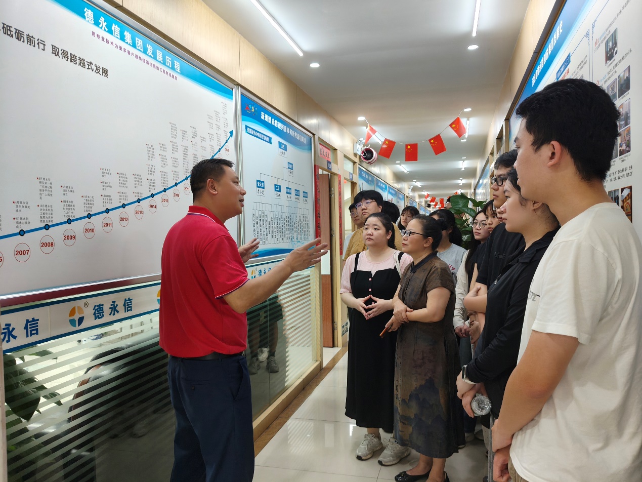 德永信集团人事经理袁春带领大家参观了德永信集团的办公场所、党建文化长廊以及企业荣誉展示区。通过参观,教师们对德永信集团的企业文化、发展历程、业务范围以及行业地位有了更为直观和深入的了解。德永信集团作为财税服务行业的领军企业,始终秉持创新、专业、高效的理念,为客户提供优质的财税解决方案,其先进的管理理念和强大的专业实力给参观教师留下了深刻印象。