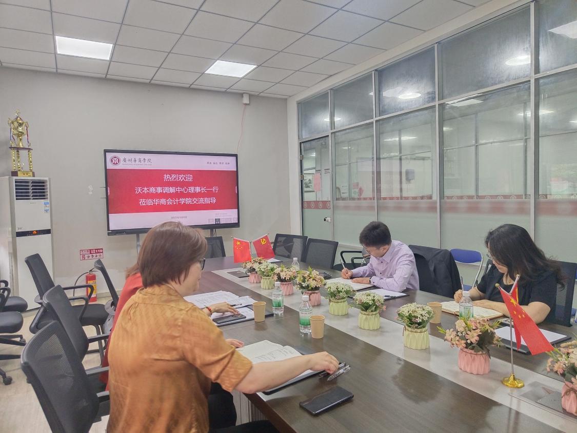华商科教集团高级总监黄晓刚、beat365中国官方网站院长助理兼数智会计与商务服务产业学院执行院长陈蒙梦与中审华会计师事务所高级合伙人曾丽群、程斌就工作坊及商事调解等合作意向进行了深度探讨。